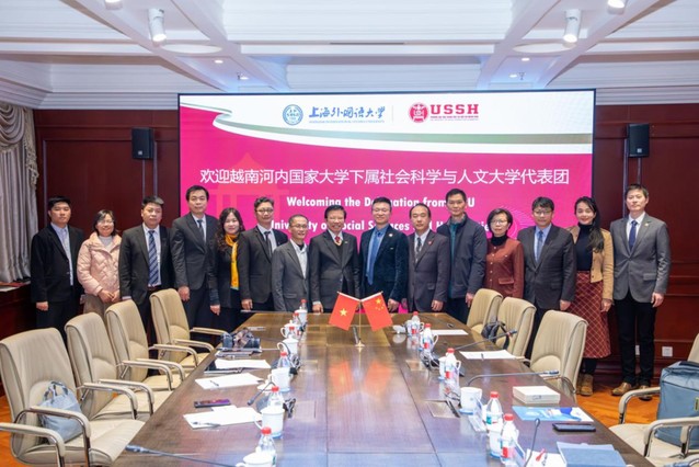 2026年1月24日,越南河内国家大学下属社会科学与人文大学(VNU-USSH)校长黄英俊(Prof. Hoang Anh Tuan)率人类学、政治学、东方学、语言学等院系及职能部门负责人一行8人访问上海外国语大学。副校长衣永刚在虹口校区热情接待来宾,双方深入交流区域国别学(中国学、越南学)、语言科学、政治学等学科的人才培养、科研合作新路径。东方语学院院长程彤、越南语专业教师卢珏璇出席会谈。