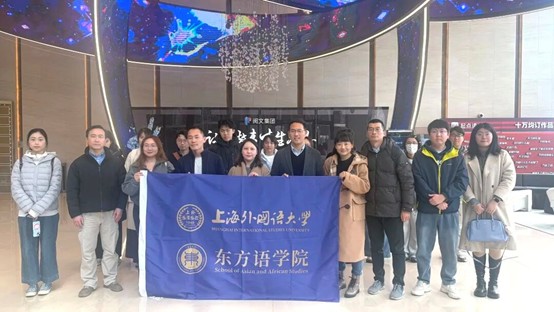 2026年3月19日,上海外国语大学东方语学院师生代表团参观阅文集团上海总部,调研文化出海新趋势。东方语学院副院长(主持工作)、阿拉伯语专业主任陈越洋,党委常务副书记王征,党委副书记庄孝林,阿拉伯语专业副主任张雪峰,朝鲜语专业副主任金镛镇,印尼语专业主任郁倩,泰语专业教师廖育人,土耳其语专业教师黄嘉玲以及辅导员沈羽楠带领阿拉伯语、朝鲜语、印尼语、越南语、土耳其语、柬埔寨语等7个语种10余位本研学生参加本次调研活动。